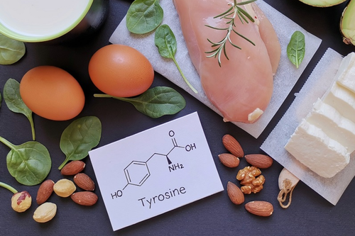 L-tyrosine is an amino acid that occurs naturally in the body. It is considered semi-essential because the body can synthesize it from another amino acid, phenylalanine, but this production can become insufficient during periods of intense stress, prolonged fatigue, or high mental demand. L-tyrosine is now widely used in micronutrition to support concentration, alertness, andnervous system balance, particularly during periods of intellectual or emotional stress.