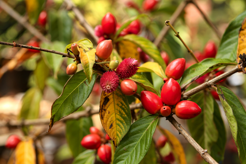 Le rocouyer, aussi appelé urucum ou achiote, est un petit arbre originaire des régions tropicales d’Amérique du Sud. Utilisé depuis des millénaires par les peuples amazoniens, il servait à la fois de colorant naturel, de protection solaire et de remède traditionnel. Les Indiens d’Amazonie s’enduisent encore aujourd’hui le corps de sa pâte rouge pour se protéger des insectes et du soleil. Découvert par les explorateurs européens au XVIᵉ siècle, le rocouyer s’est rapidement répandu dans le monde entier pour sa richesse en bêta-carotène et en antioxydants.