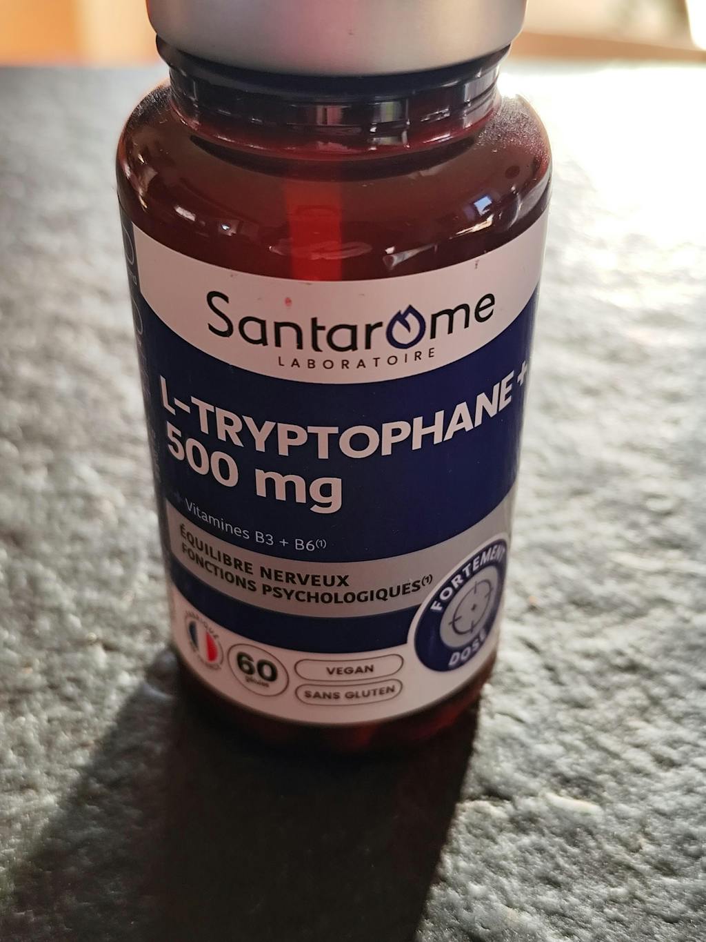 Traversant une période difficile je sens que mon système nerveux est soumis à rude épreuve. J ai fait une cure de magnesium marin 3 mois qui n a pas franchement amélioré ce souci. En revanche ce L Tryptophane m'aide au quotidien. J en prends 2 le matin et j ai déjà remarqué une amélioration au bout d'1 mois... Encourageant.